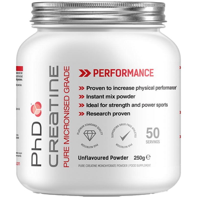 • Unlock your fitness potential with PhD Creatine Monohydrate, Unflavoured 250g. This renowned supplement is designed for athletes and fitness enthusiasts seeking to enhance their performance by boosting strength and power. Creatine Monohydrate is a scientifically validated supplement, famous for its ability to help increase muscle mass, enhance endurance, and expedite recovery times.