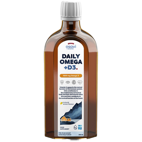 Osavi Daily Omega + D3, 1600mg Omega 3 (Natural Lemon) - 250 ml.