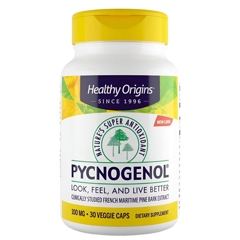 • Healthy Origins Pycnogenol 100 mg is a premium dietary supplement that harnesses the potent effects of French maritime pine bark extract. This natural antioxidant is rich in a unique blend of procyanidins, bioflavonoids, and phenolic acids, providing comprehensive support for your body's health.