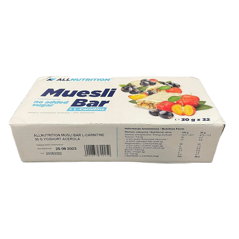 Allnutrition MĂŒsliriegel + L-Carnitin, Joghurt und Acerola â 32 Riegel