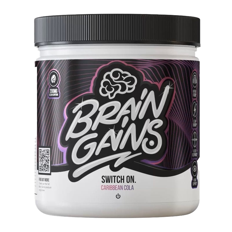 Discover the transformative power of Brain Gains Switch On Caribbean Cola 225g, your premier choice for enhancing mental clarity and optimizing cognitive function. Crafted with a synergistic blend of premium nootropics, this energizing brain-boosting powder not only sharpens your memory and focus but also uplifts your motivation and mood.